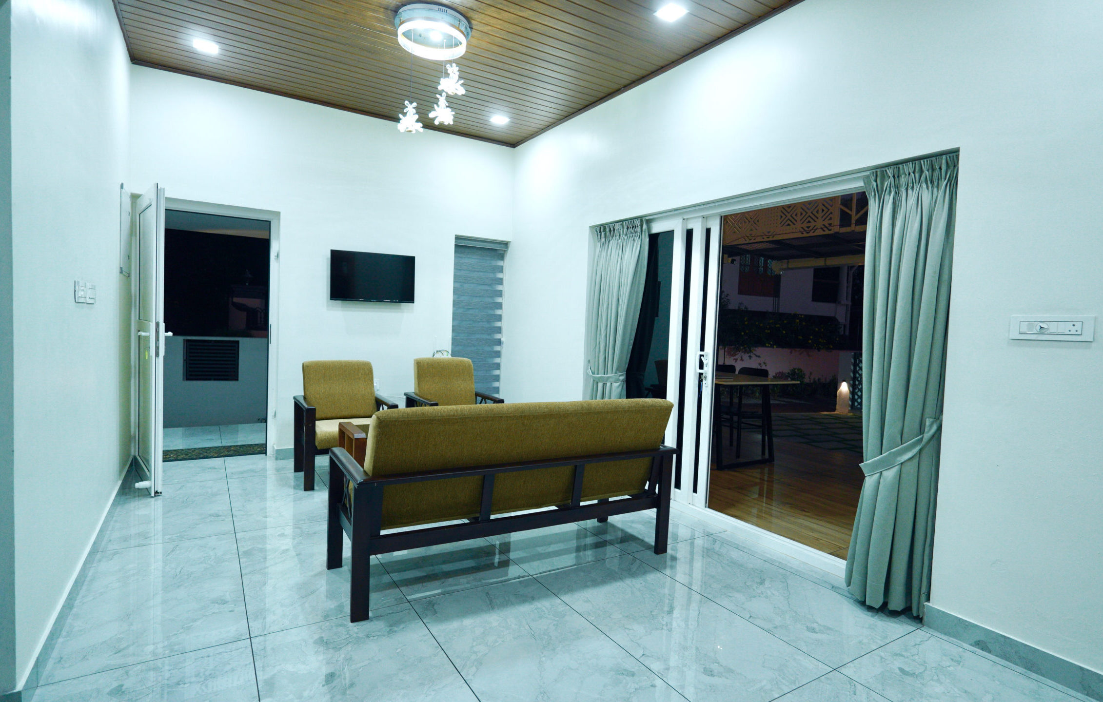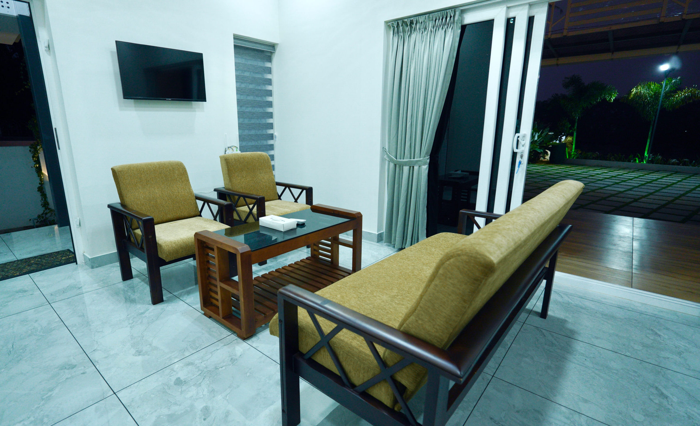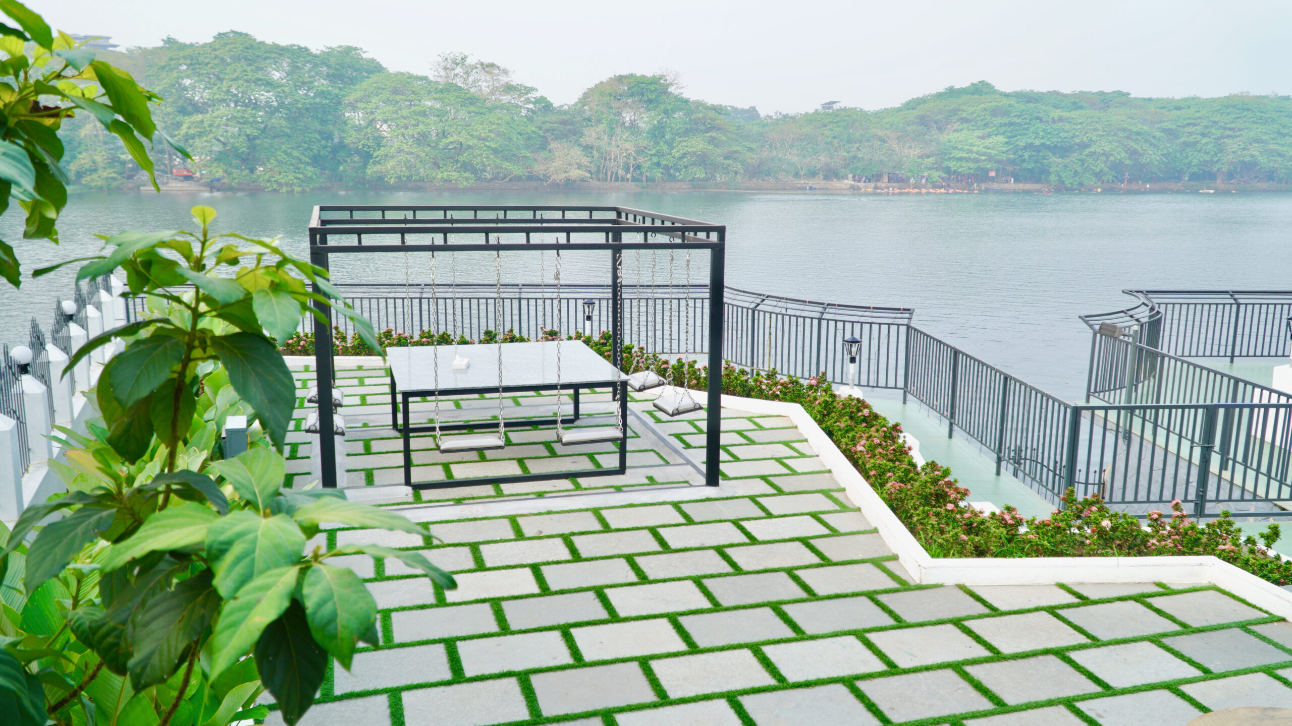 Unwind in a beautifully designed riverside sit-out at our private pool villa in Kochi, where scenic water views and lush greenery create a calm and refreshing atmosphere. The spacious outdoor seating area is perfect for enjoying your morning coffee, reading a book, or spending quality time with family and friends. With open skies, landscaped pathways, and direct views of the river, this relaxing corner offers a peaceful escape away from city noise. Guests can also enjoy sunset moments, photography, and quiet conversations in this serene setting, making it an ideal spot for couples and families looking for a comfortable nature-filled stay.